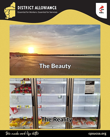 In the meantime, we're rolling out a campaign that puts District Allowance front and centre - and members' involvement is crucial. Whether it’s sharing your story, joining actions, or sharing the message in your workplaces. Together, we can make sure the District Allowance better reflects the real cost of living in regional WA!